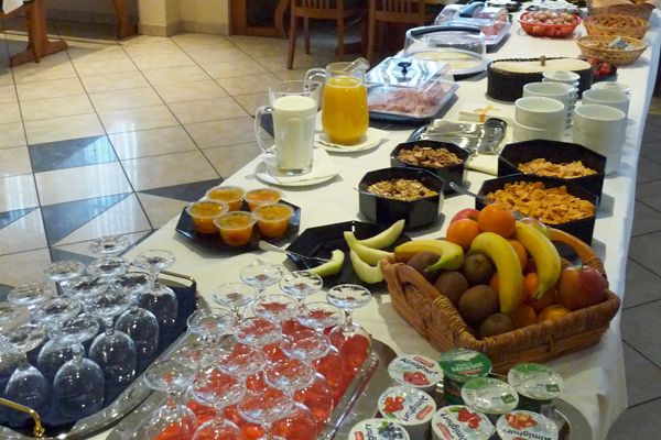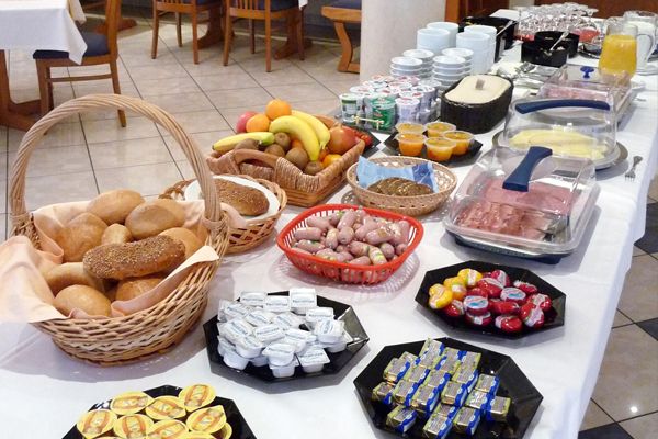 Wir bieten Ihnen ein reichhaltiges Frühstücksbuffet mit leckeren Brötchen und Brot von unserem örtlichen Bäcker.